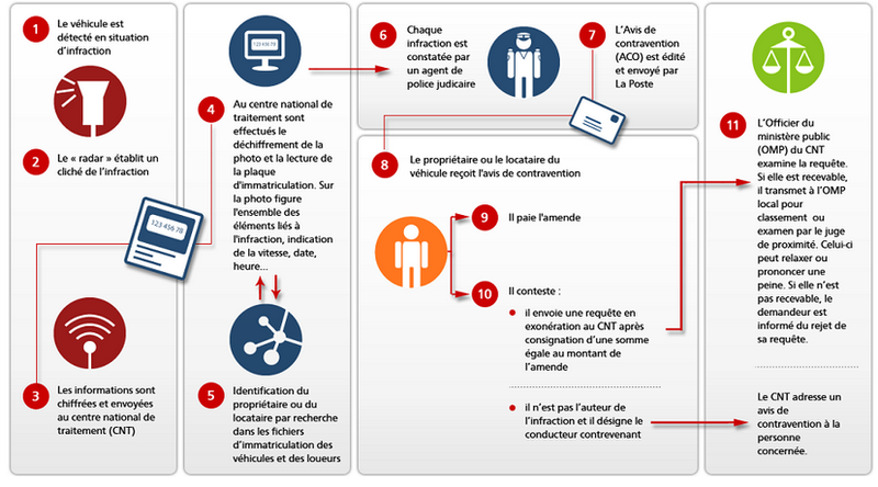 L'infographie suivante indique les étapes, depuis le flash radar jusqu'à la réception de l'avis de contravention.