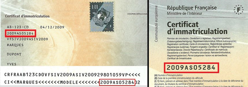 C’est le numéro de référence unique de la carte grise depuis 2009.