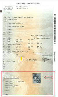 Numero d'immatriculation Pour un véhicule immatriculé après avril 2009 :